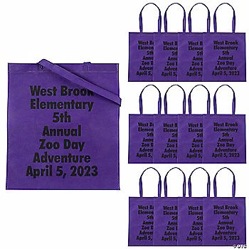• Eco-Friendly: Ditch the plastic bags and go green with this eco-friendly tote bag! Mother Earth is sure to appreciate the gesture, so go ahead and gift this tote bag to your friends and family while you’re at it! • Travel-Friendly: No matter where your day takes you, this tote bag is sure to be a handy companion! Designed with easy-to-use straps and a spacious interior compartment, this tote bag is ready for on-the-go fun! • Fun Crafts: With some craft tools and imagination, this tote bag could be your next creative project. Perfect as a classroom activity or an at-home craft, this tote bag just needs your personal touch to come to colorful life! Product Description:Go bright and bold with these large tote bags, which you can customize with your own message in the color of your choice! Durable and earth-friendly, these totes are ideal for carrying anything, anywhere. They’re great for swag bags, and can be reused to tote around groceries, library books, gym clothes and your everyday essentials. Personalize with up to 7 lines of text. Nonwoven. (2 dozen per unit) 15″ x 17″ with 12″ handles. © OTCSize: 15″ x 17″Quantity: 24Material: Nonwoven polyester.