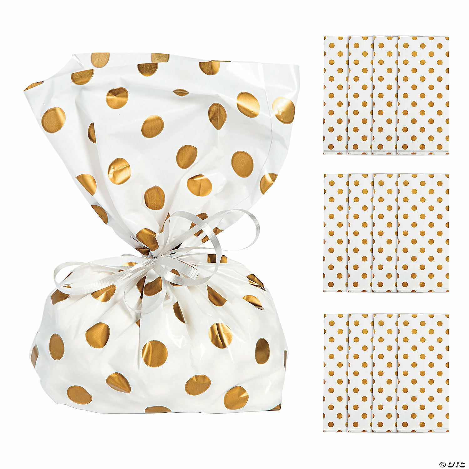• Sweet Style: Display your delicious delights or party favors in style with these fun bags! You can make a decorative statement at any event with these bags, a few treats and some stylish twist ties.• Say Thanks with Sweets: Are you looking for an easy way to thank the people in your life? These multipurpose bags filled with great snacks are a sweet way to spread appreciation among party guests, students and teachers, or employees!• Perfect Size for Parties: These treat bags are just the right size for candies. Fill them up with tasty treats and hand them out as party favors at your next birthday party, holiday gathering or wedding reception! Product Description:Goody bags are a party essential. These classy polka dot bags are perfect for your wedding reception favors, bridal shower, anniversary party or any other special celebration. Simply fill them with goodies, use your favorite ribbons or twist ties to close and you’re ready for the event. Ties not included. © OTCSize: 5 1/2″ x 2 1/2″ x 11″ Quantity: 12Material: Cellophane.