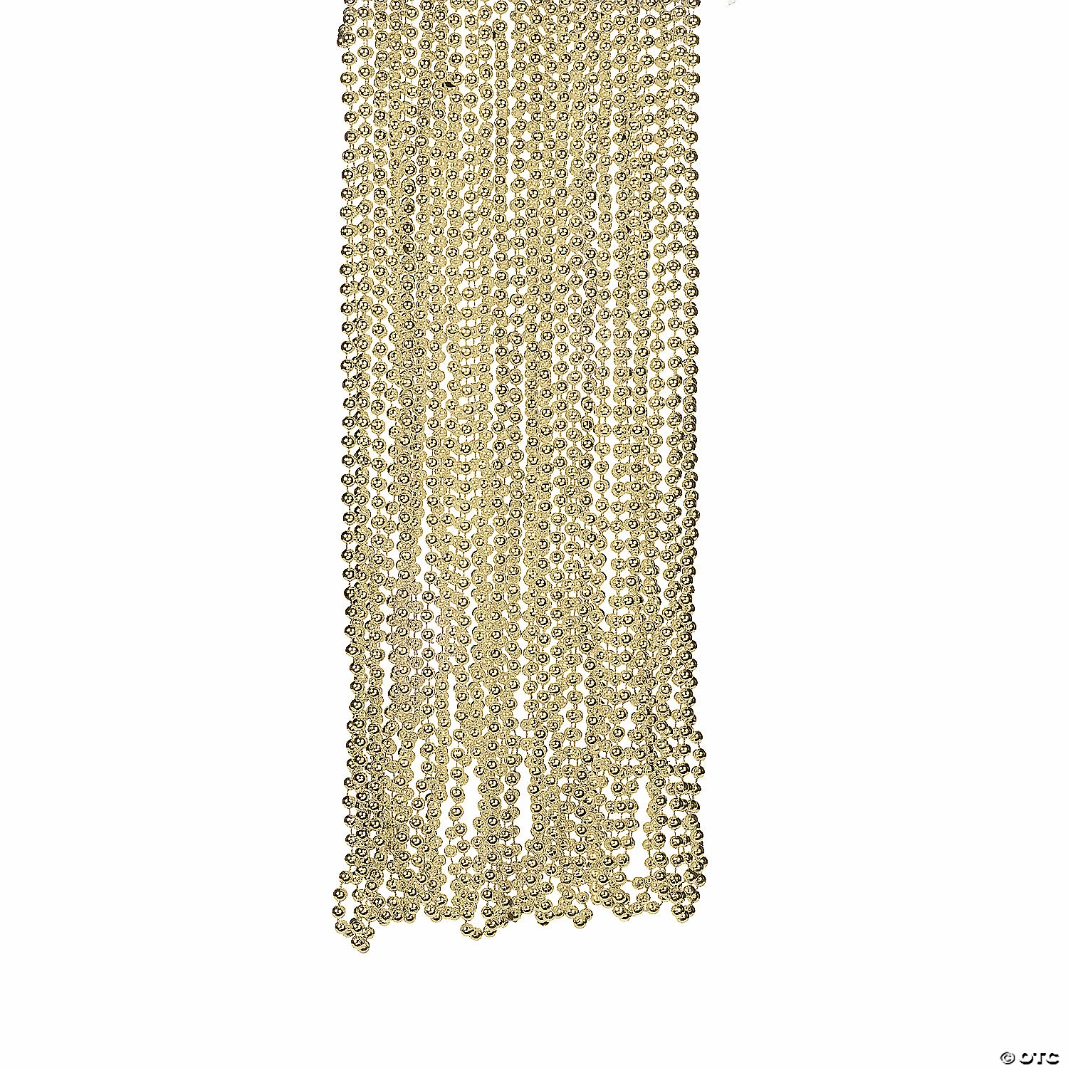 Select these Mardi Gras party supply beads in your event’s colors. Pile on these plastic metallic beads in your favorite colors for an instant party mood! They’re also great for wedding receptions, New Year’s Eve parties, bachelorette parties, birthday parties, game day outfits and more! Use them as party decorations when you drape them over lamps and furniture, or tuck them into party favor treat bags so your guests can shine the night away! (4 dozen per unit) 33″ with 6mm beads.