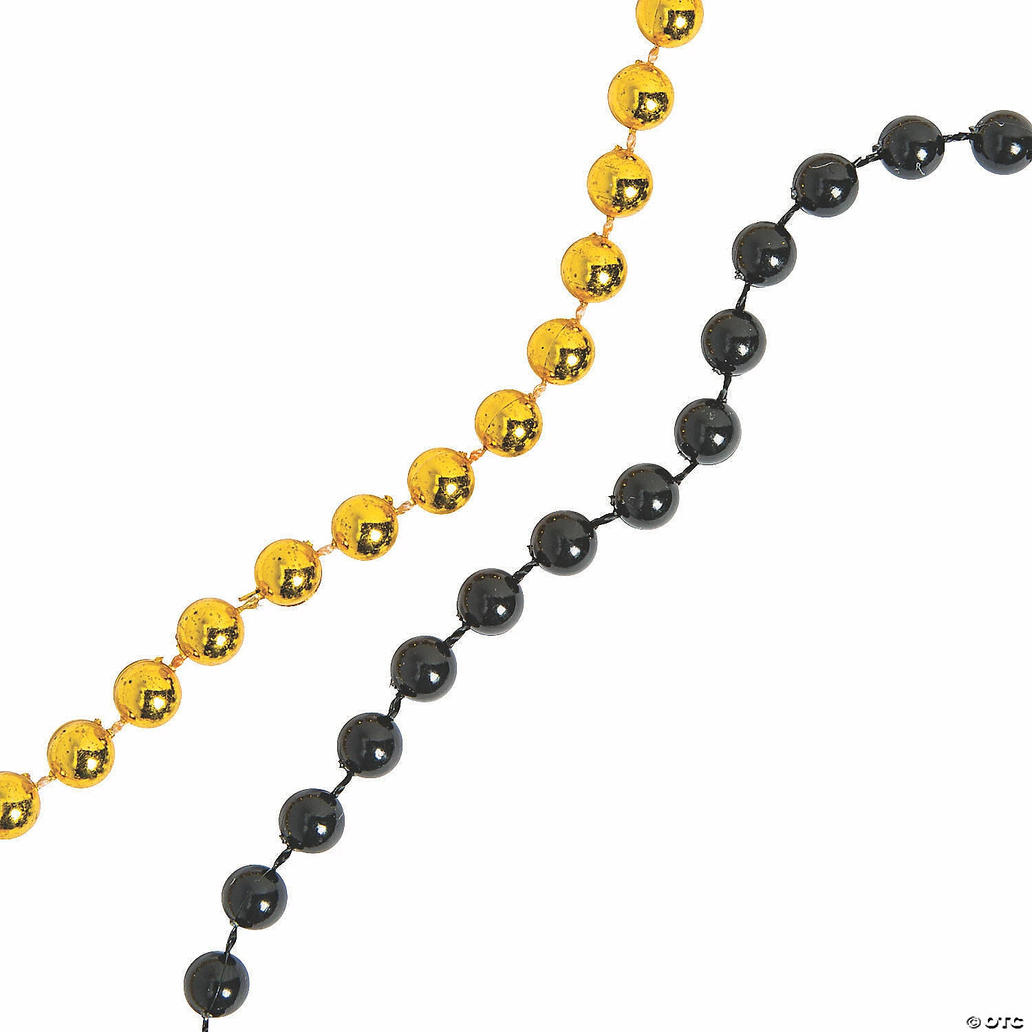 Celebrate Mardi Gras or any other special occasion with Mardi Gras party supply beads! These necklaces, in black or gold, make awesome parade tosses, and kids will love wearing them even if there is no holiday to celebrate or parade to attend. Hand out these necklaces as party favors or just for fun! Also, you’ll love wearing these costume accessories at Mardi Gras parades or as props in a DIY photo booth. Plastic. (4 dozen per unit) 30″ with 6mm beads.