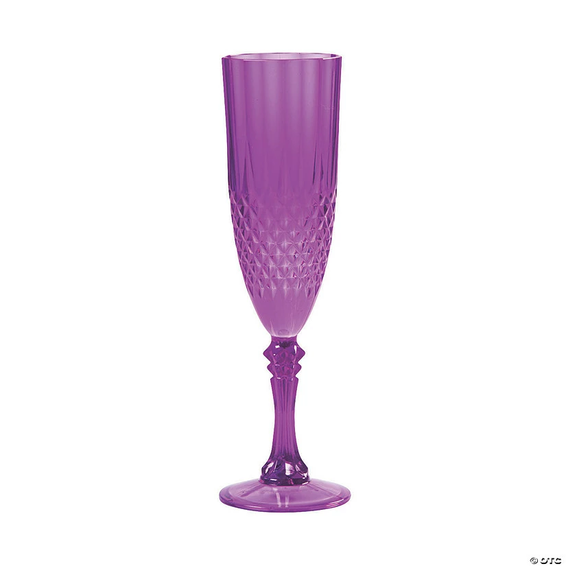 Add purple accents to your tablescapes with these Bright Purple Patterned Champagne Flutes! With detailing near the stem, these glasses give the feel of real crystal stemware! Why pay more when you can get a unique wedding tableware look for less! Plastic. 9″ 8 oz.