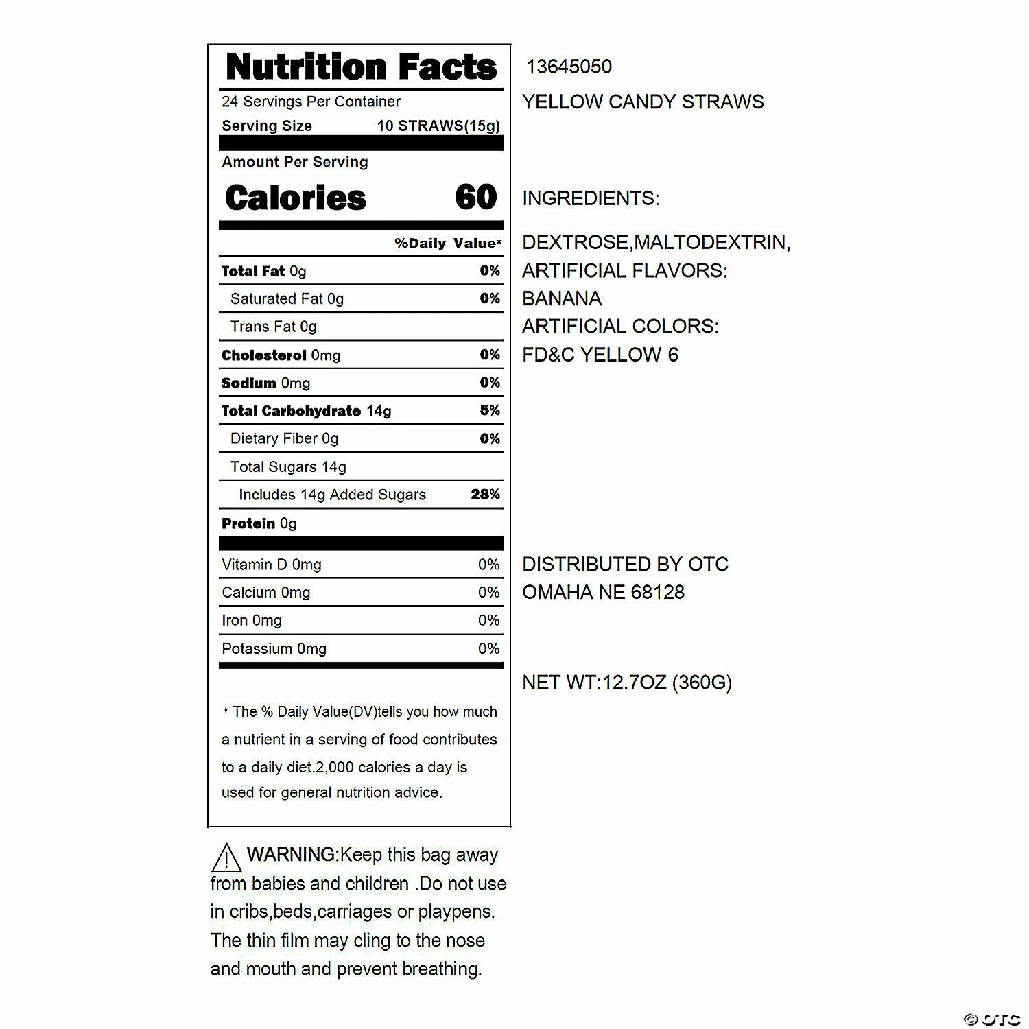 These banana-flavored candy straws are perfect for any event as part of your candy buffet. Ideal for putting in a glass jar at a candy buffet, they make fun additions to goodie bags, too! Enjoy a burst of sweetness when you tear into one of these classic candy sticks. (240 pcs. per unit) 5″ Fat-free. Total wt., 13 oz. Candy is non-returnable. For more information, visit our “Return Policy” page located on our website. © OTC