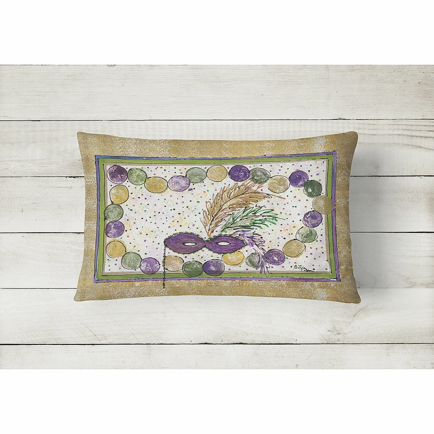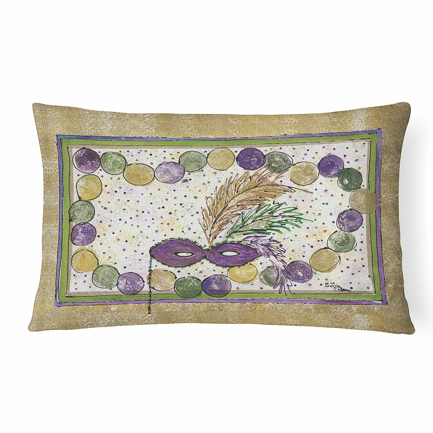 Mardi Gras Beads Canvas Fabric Decorative Pillow. Celebrate Mardi Gras with this Mardi Gras Pillow. Add color to your solid color bedroom, living room, outdoor patio furniture or outdoor seating area with our full color artwork outdoor pillows. Each pillow measures Approximately 12 inches by 16 inches and is measured from corner to the opposite corner of the pillow. 100% Polyester Fabric canvas pillow Sham with polyester pillow form filled with foam. This pillow is made from Caroline’s Treasures new outdoor material and can be used inside or outdoors. The sham and the pillow form are included and both made in the US. The sham fabric is woven to make it water resistant and still be soft to the touch. These pillows are also Mildew resistant, stain resistant, fade resistant and Machine washable. These pillows are all made by hand and may vary slightly in size. This Pillow is from Caroline’s Treasures New Orleans category of products.