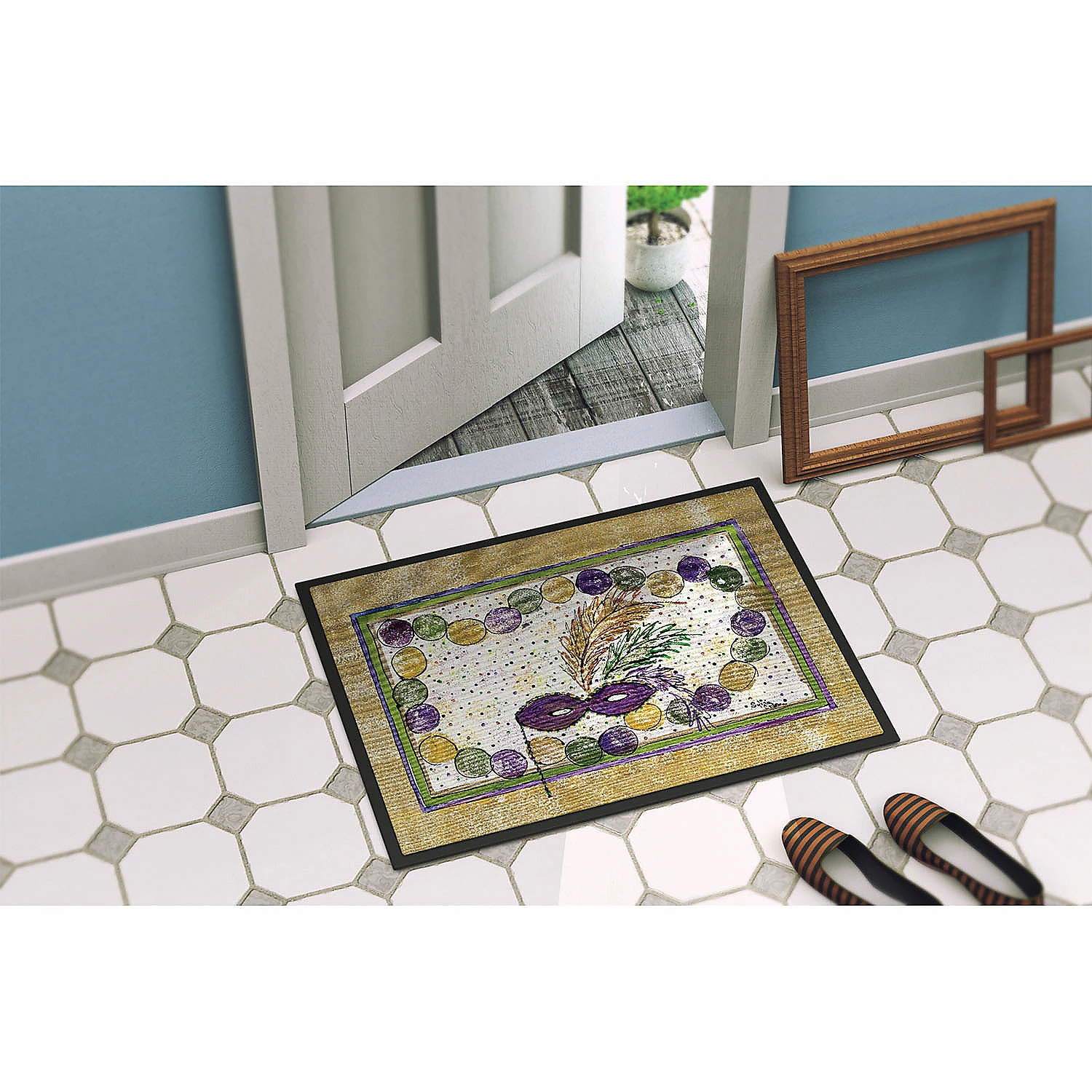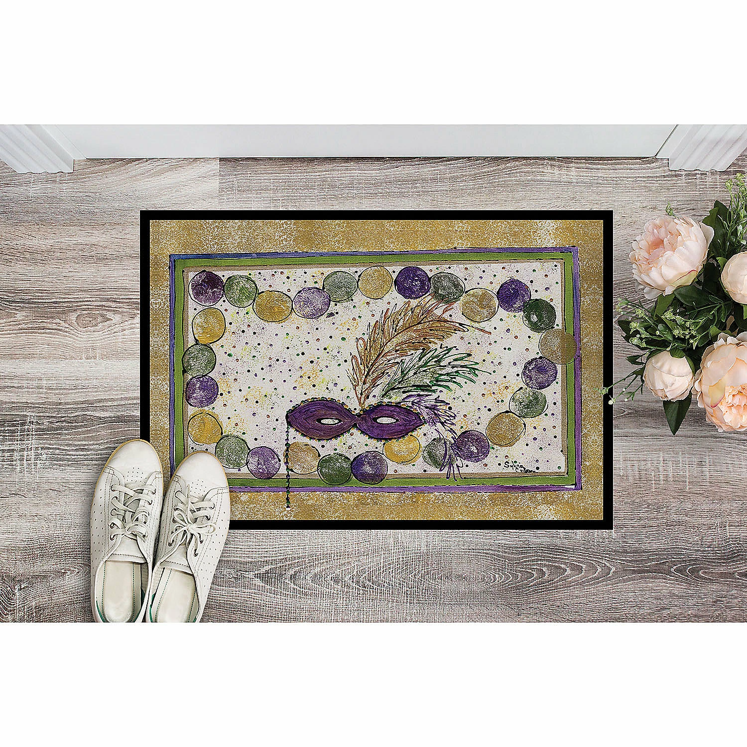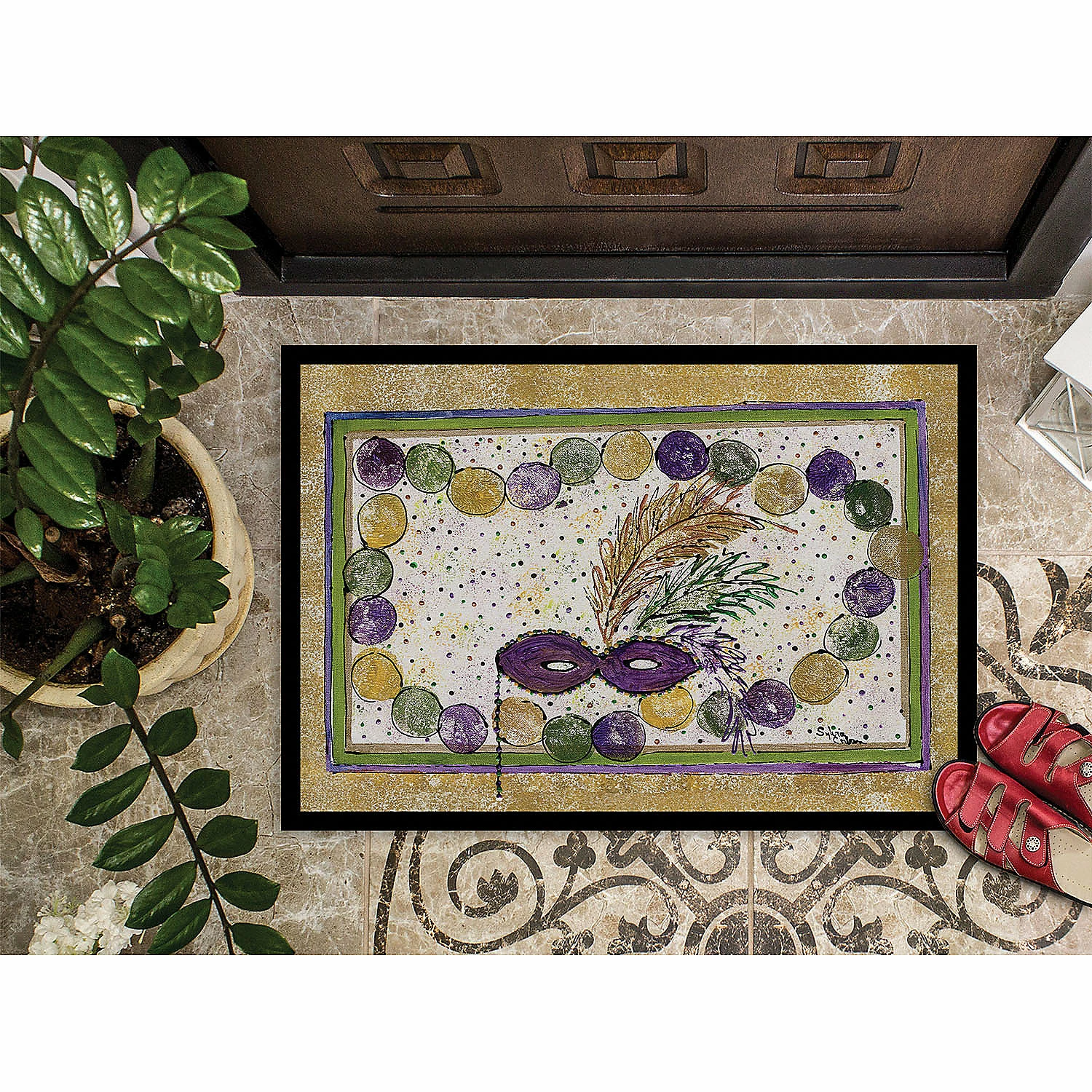 Mardi Gras Beads Indoor or Outdoor Mat 24×36. Celebrate Mardi Gras with this Mardi Gras Doormat. Welcome your family and friends with this Artwork mat in full color. This action backed mat with hold up in almost any weather condition. This door mat measures about 24 inches by 36 inches and has a black binding tape to hold it’s many layers together. The top layer is a polyester felt that is dyed with the image that you see on the mat. The next couple of layers give the mat stability and the bottom of the mat is rubber that has been stamped to help prevent slipping. To clean this mat, hose it off with a water hose or use a powerwasher. Do not use any cleaner that produces suds. This Doormat is from Caroline’s Treasures New Orleans category of products.