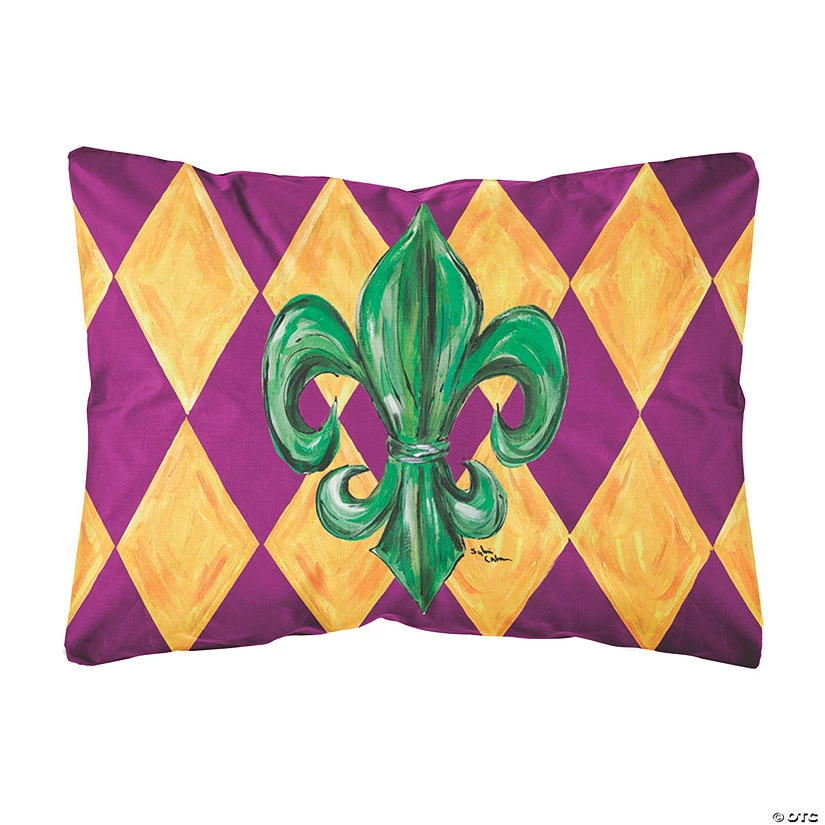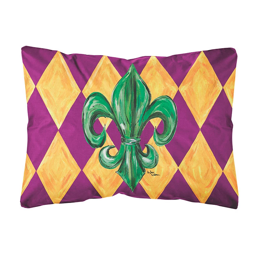 Mardi Gras Fleur de lis Canvas Fabric Decorative Pillow. Celebrate Mardi Gras with this Mardi Gras Pillow. Add color to your solid color bedroom, living room, outdoor patio furniture or outdoor seating area with our full color artwork outdoor pillows. Each pillow measures Approximately 12 inches by 16 inches and is measured from corner to the opposite corner of the pillow. 100% Polyester Fabric canvas pillow Sham with polyester pillow form filled with foam. This pillow is made from Caroline’s Treasures new outdoor material and can be used inside or outdoors. The sham and the pillow form are included and both made in the US. The sham fabric is woven to make it water resistant and still be soft to the touch. These pillows are also Mildew resistant, stain resistant, fade resistant and Machine washable. These pillows are all made by hand and may vary slightly in size. This Pillow is from Caroline’s Treasures New Orleans category of products.