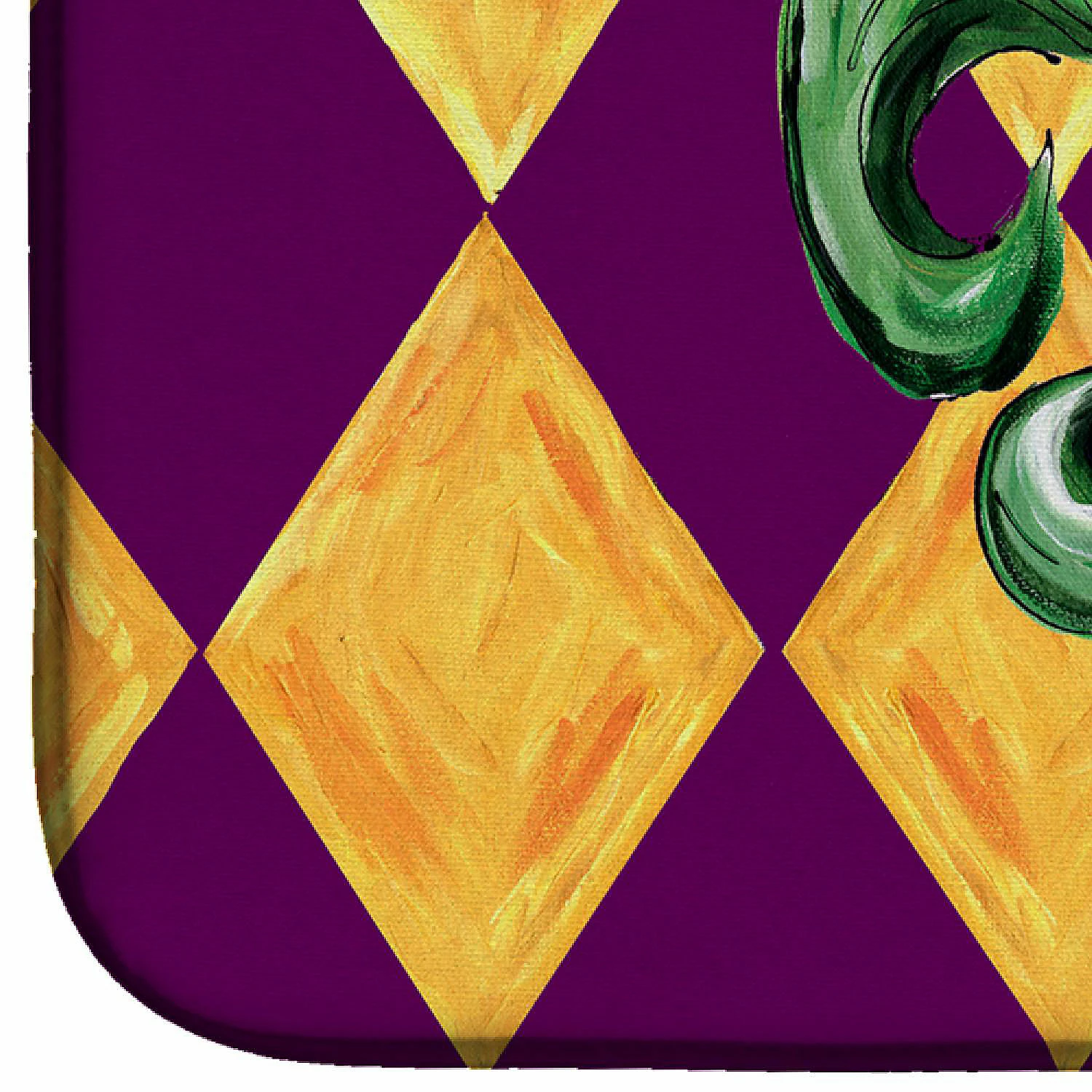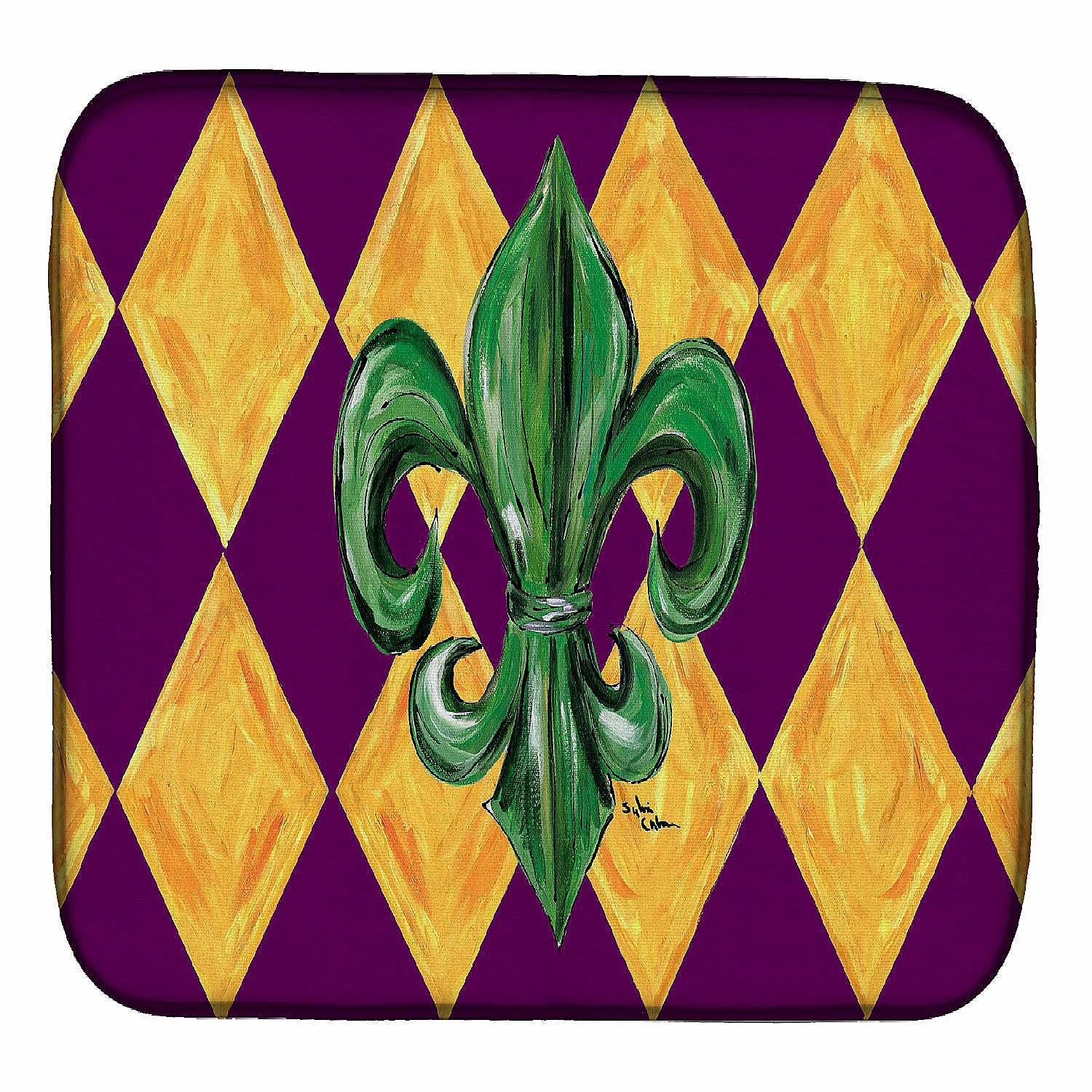 Mardi Gras Fleur de lis Dish Drying Mat. Celebrate Mardi Gras with this Mardi Gras Dish Drying Mat. Tired of setting dishes on an old towel? Well fret no more when you set your eyes on this decorative dish mat! It measures 14 inches x 21 inches and features a water-absorbent polyester face, polyurethane foam insert, polyester mesh lining and a binding edge finish. Add a touch of flair and functionality to the kitchen by ordering yours today! This Dish Drying Mat is from Caroline’s Treasures New Orleans category of products.