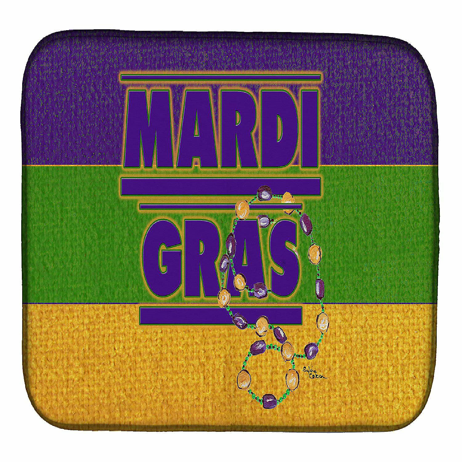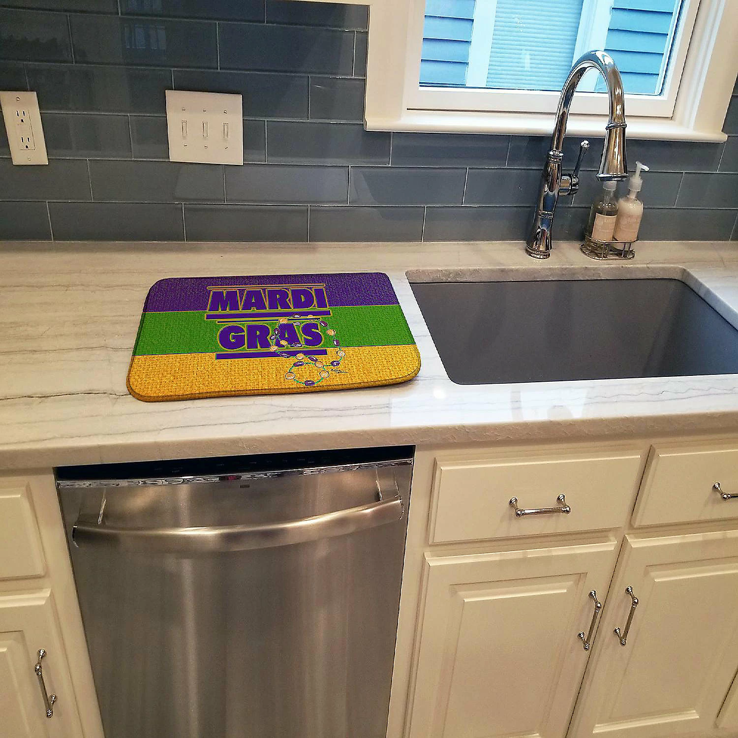 Mardi Gras with Beads Dish Drying Mat. Celebrate Mardi Gras with this Mardi Gras Dish Drying Mat. Tired of setting dishes on an old towel? Well fret no more when you set your eyes on this decorative dish mat! It measures 14 inches x 21 inches and features a water-absorbent polyester face, polyurethane foam insert, polyester mesh lining and a binding edge finish. Add a touch of flair and functionality to the kitchen by ordering yours today! This Dish Drying Mat is from Caroline’s Treasures New Orleans category of products.