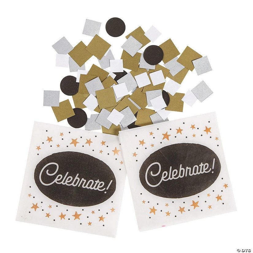 Looking for a fun way to celebrate? Whether it’s a New Year’s Eve party or a graduation, simply toss the confetti in the air and wave the pouch around like you just don’t care! Perfect for tossing when the clock strikes midnight on New Year’s, you can use it for any celebration, too! Paper and plastic. Pouch, 4″ x 4″.
