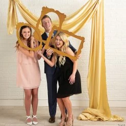 Glittering picture frames ideal for a wedding or anniversary party photo booth! Capture the fun by having guests frame themselves within these Gold Glitter Picture Frame Cutouts. These pretty gold picture frames serve a dual purpose as both party or reception decorations and as photo props! Cardboard. (3 pcs. per set) 16″ x 23″ © OTC