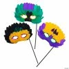 Go glittery! Red, blue and gold masks are perfect for adding glamour and mystery to your Mardi Gras party. They’re also great for masquerade balls, prom or costume parties. Sport some sparkle at your next celebration. This glitter mask assortment is perfect for your party favor bags when you add Mardi Gras beads and other jazzy jewelry. Each with 18″ ribbon ties. Plastic. 8″ x 3″