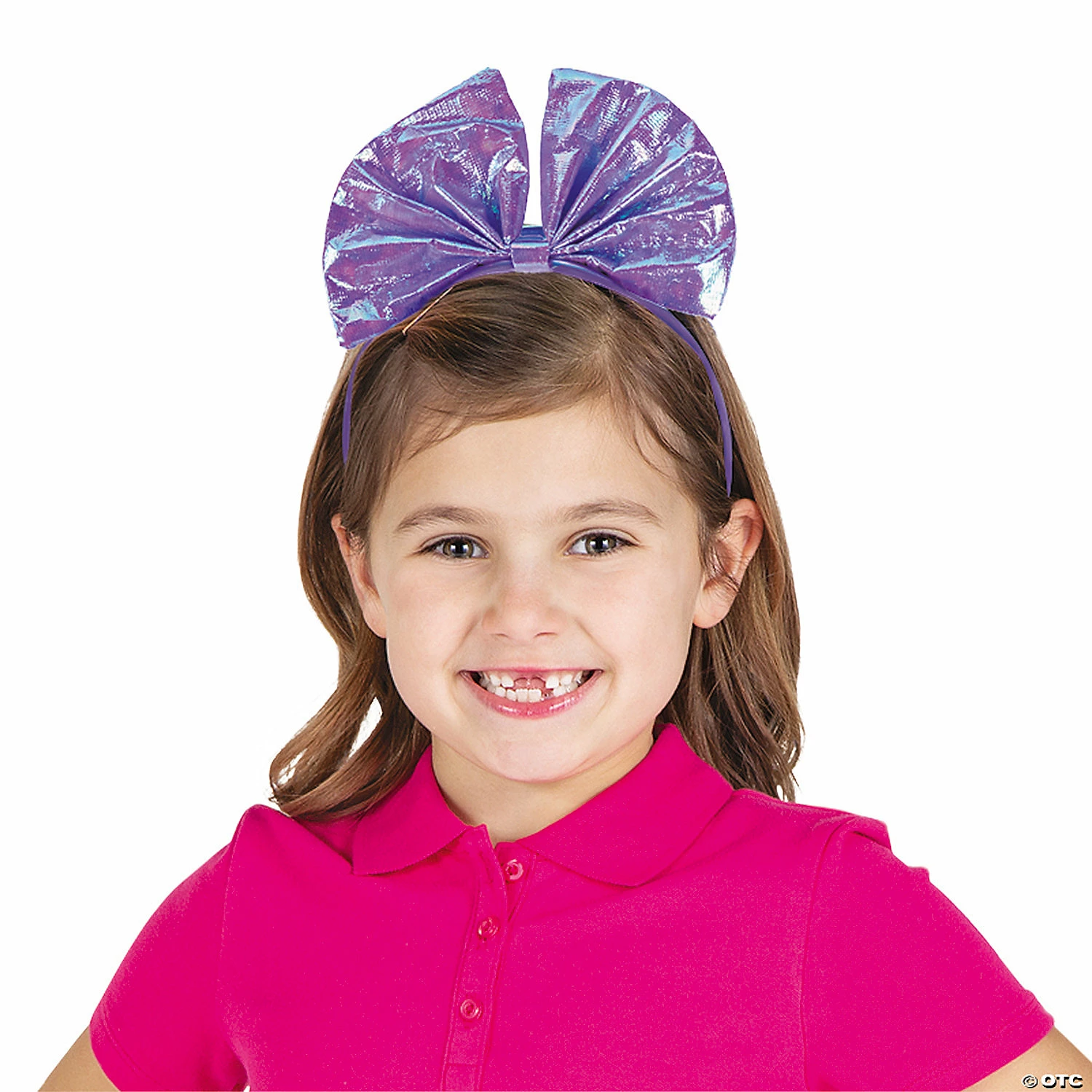 These holographic hair accessories look great with any look! The purple headbands feature oversized shiny bows, which are always popular with little girls. Whether you add them to your birthday party favors, use them as event giveaways or incorporate them into costumes, these kids’ headbands shine! Each 5 1/2″ polyester-wrapped plastic headband is topped with a 6 1/4″ bow.
