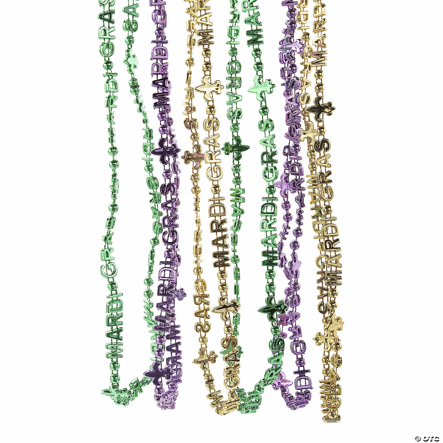 Spell it out with these festive beads! In classic Mardi Gras colors like gold, purple and green, these Mardi Gras beads literally say it all! Hand them out to passersby on Fat Tuesday or spread them out on Mardi Gras party tables for guests to grab. Plastic. (4 dozen per unit) 30″ circ. with 10mm – 15mm beads. © OTC