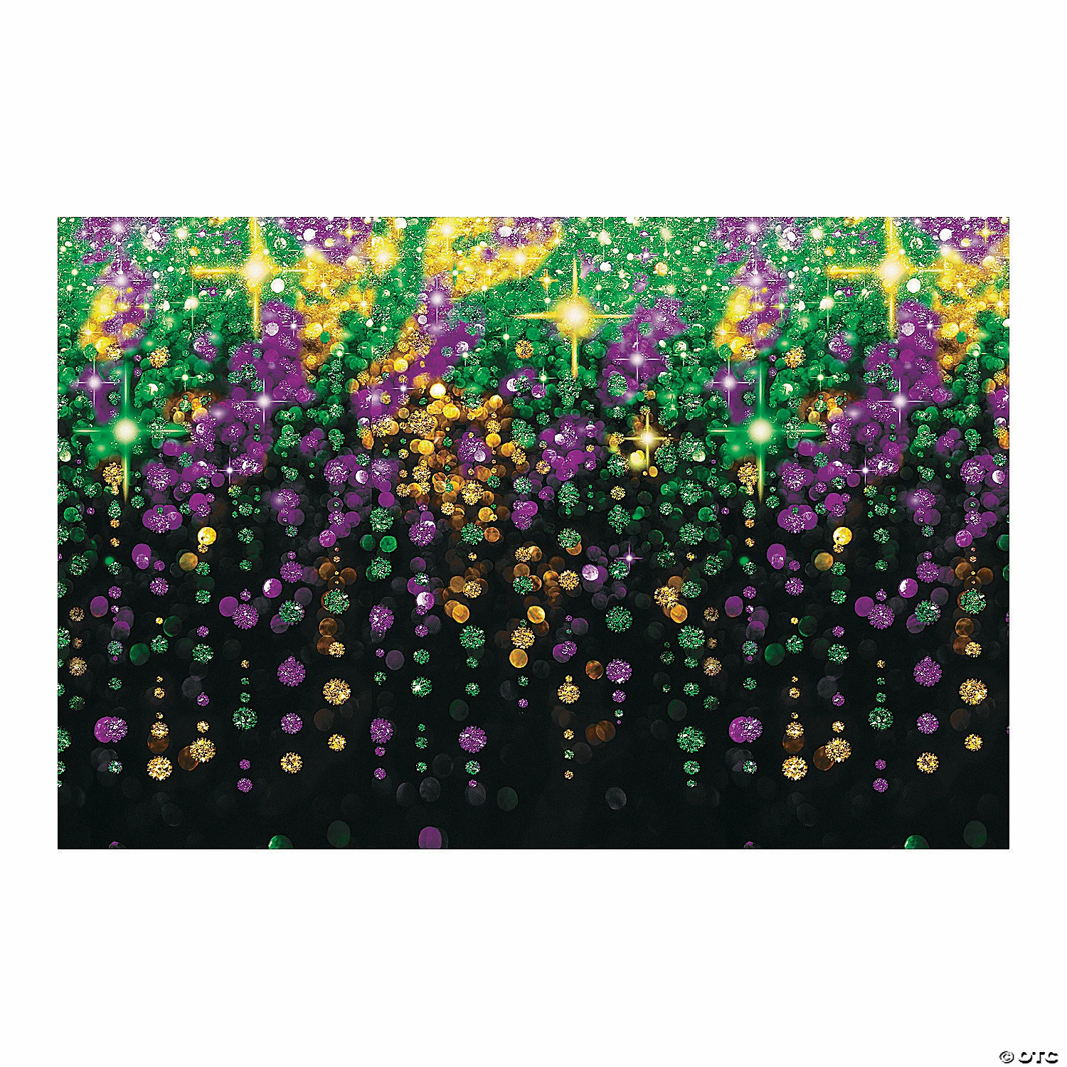 Our Mardi Gras Beads Galore Backdrop Banner is a stunning addition to your Mardi Gras party supplies! Perfect for dressing up the walls, it’s also ideal for setting up a photo booth – get a snapshot of everyone in their Fat Tuesday finery! Printed with glimmering Mardi Gras beads, this unique party decoration will make your event memorable. It’s also perfect décor for a masquerade ball, prom or New Year’s Eve party. Plastic. (3 pcs. per set) Assembled, 9 ft. x 6 ft. Simple assembly required. © OTC