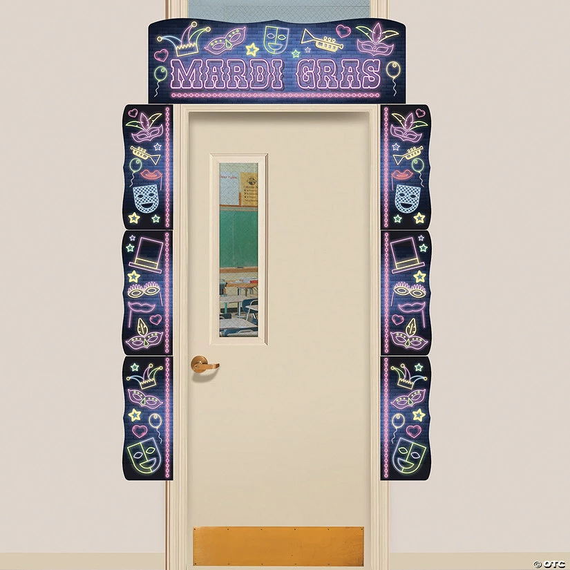 Featuring neon Mardi Gras icons, this eye-catching door decoration is perfect for seasonal classroom décor. Not just for classrooms, it can border any door to a restaurant, bar, community center and more. Cardstock. (8 pcs. per set) Assembled, 36″ x 64″. Simple assembly required. © OTC