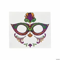 Never lose your Mardi Gras mask! Easy to apply and remove. Eye mask tattoo, 7 1/2″ x 2 1/2″; 7 assorted pieces approx. 3/4″- 2/14″ x 3/4″ – 2 1/4″ © OTC
