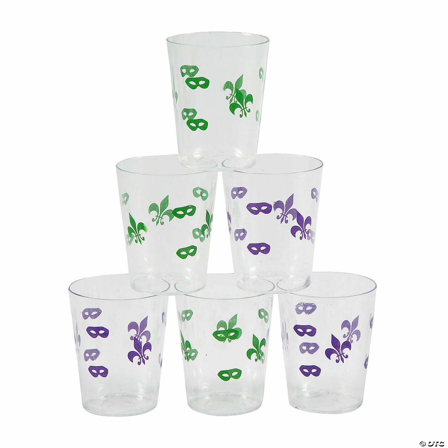 Toss back shots of your favorite liquor in true Mardi Gras fashion! These plastic shot glasses are disposable, so you don’t have to worry about clean-up; just enjoy your drink and dump the cup in the nearest recycling bin. This 24-pack has enough glasses to share toasts with loved ones at your Mardi Gras party or hand out drinks to new friends at the Mardi Gras parade! Plastic. (2 dozen per unit) 2 1/4″ 2 oz.