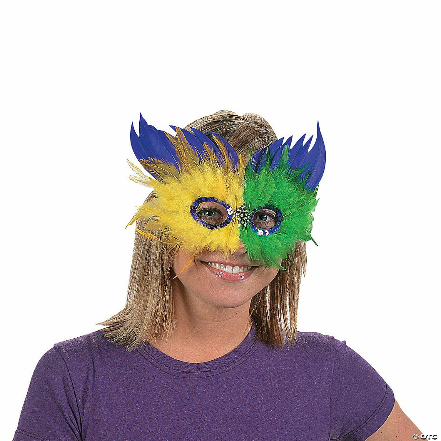 Masks are must-have Mardi Gras party supplies–and these stylish feathered masquerade half-masks make Fat Tuesday extra fancy. Hand them out as wearable party favors and photo booth props and let the good times roll. Plastic with an elastic band. 11″ © OTC
