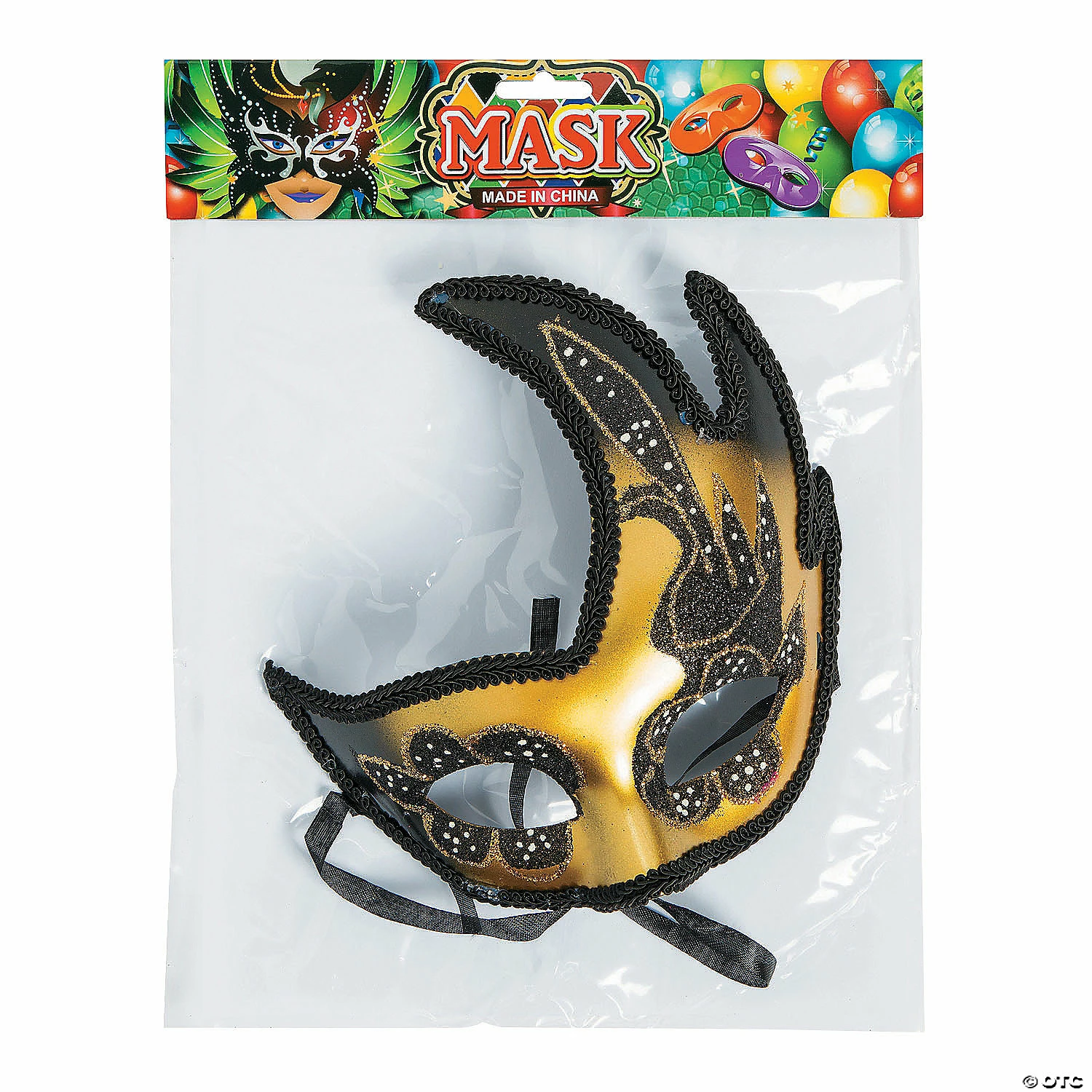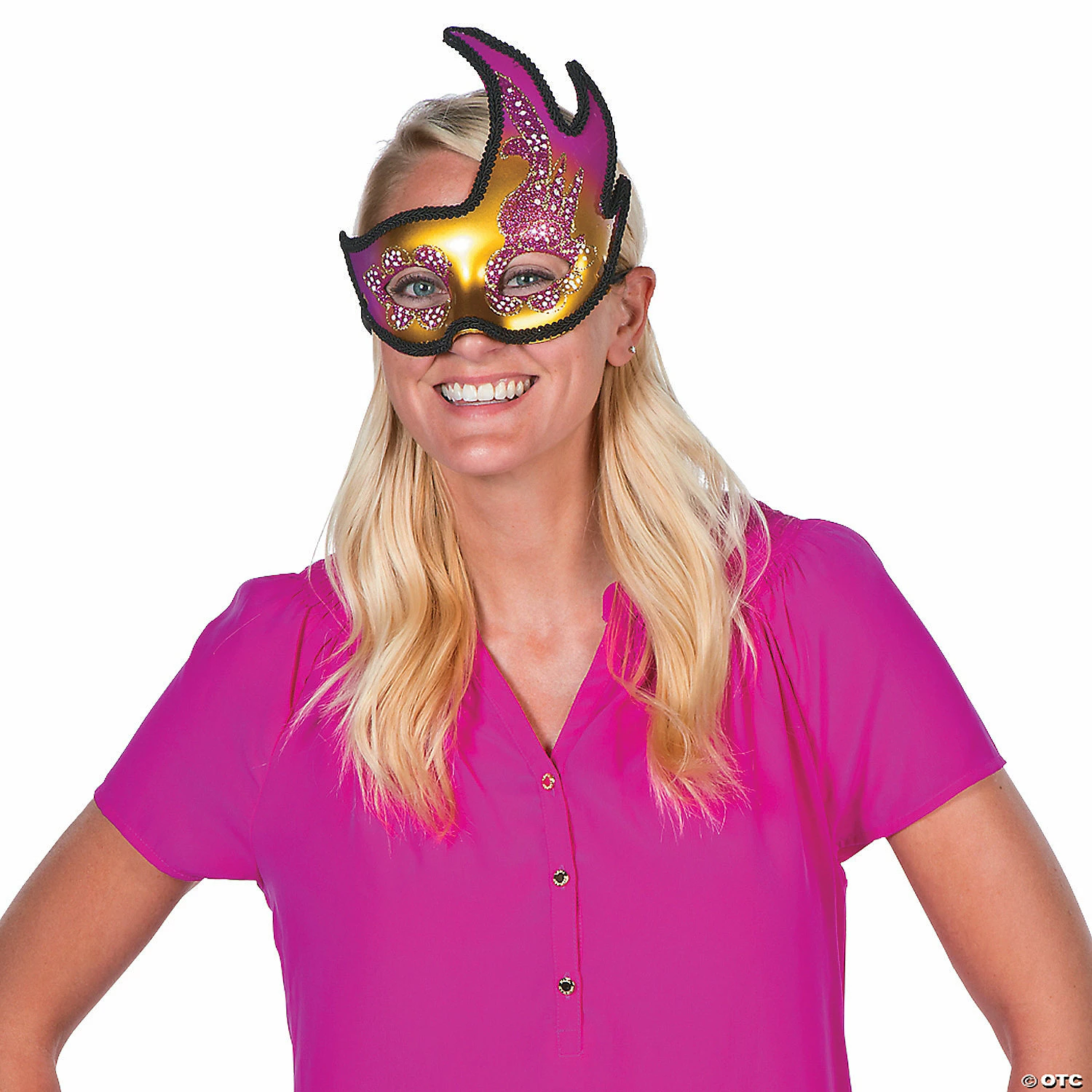 These eye-catching artistic masks will add some fashionable flair to your Mardi Gras party. Each with a stunning winged accent, these glittery Mardi Gras masks make stylish party favors, photo booth props and easy party decorations. Includes glitter accents and ribbon ties. Plastic. (6 pcs. per unit) 9″ x 8″