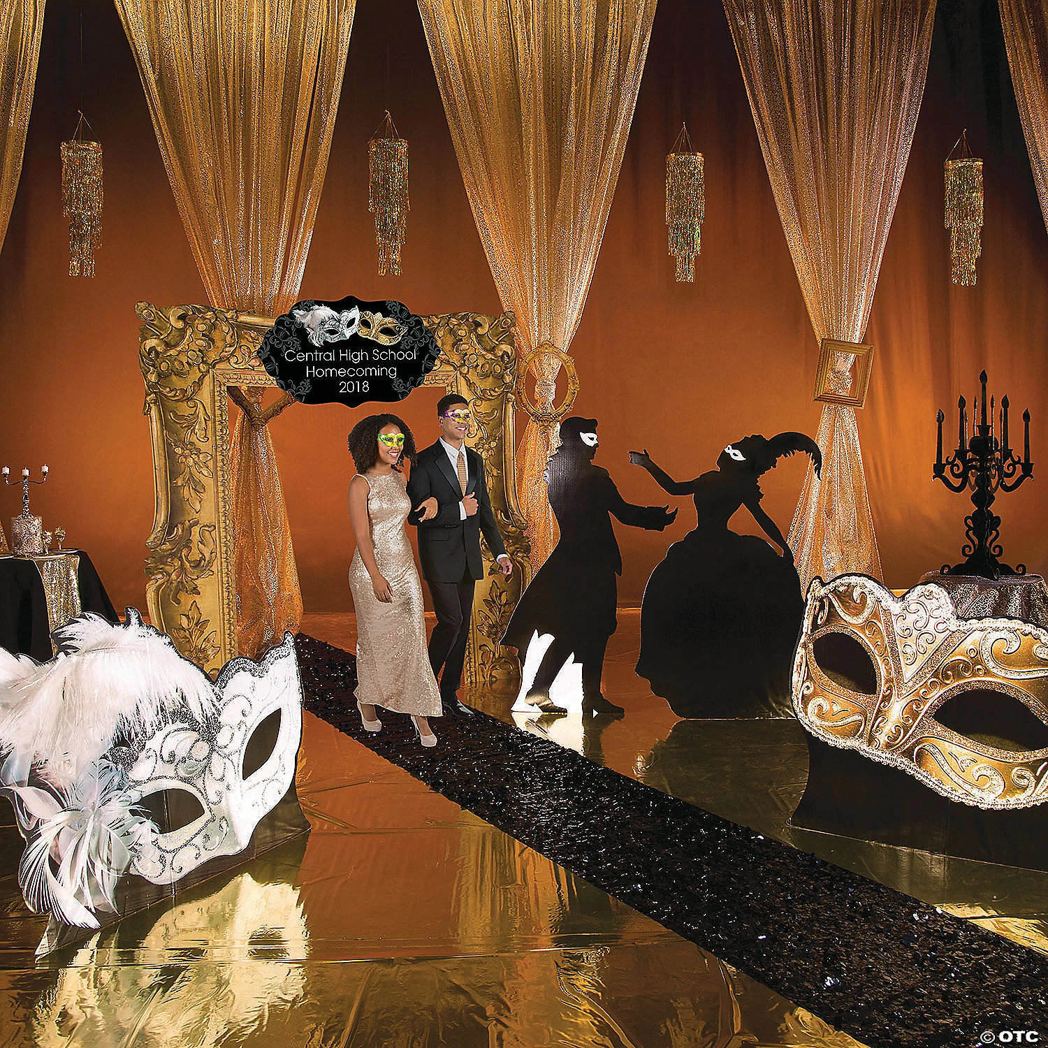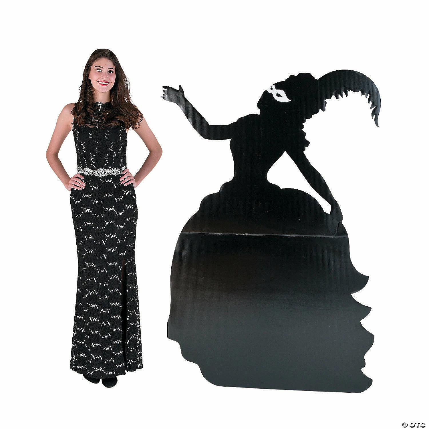 Swirl into masquerade fun with this stand-up of the silhouette of a masked woman dancing. A perfect party decoration for a masquerade ball prom, homecoming dance, corporate event or Mardi Gras party, this stand-up will make it feel like you and your fellow masked ball attendees have been transported back in time. Pose for photos with this photo prop before the big unmasking! Cardboard. 43″ x 66″ Stand-ups are one-sided with a brown cardboard back. Simple assembly required. © OTC