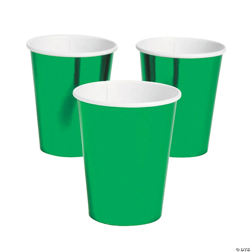 Add a subtle shimmer and elegance to your party supplies with these Green Metallic Paper Cups. Disposable paper cups are environmentally friendly party supplies and result in quick cleanup. The metallic finish on these party cups enhance the rest of your birthday party, wedding and special occasion decorations. Shop for the entire line of metallic tableware and party supplies on our site today. Paper. (2 dozen per unit) 3 3/4″ 9 oz. © OTC