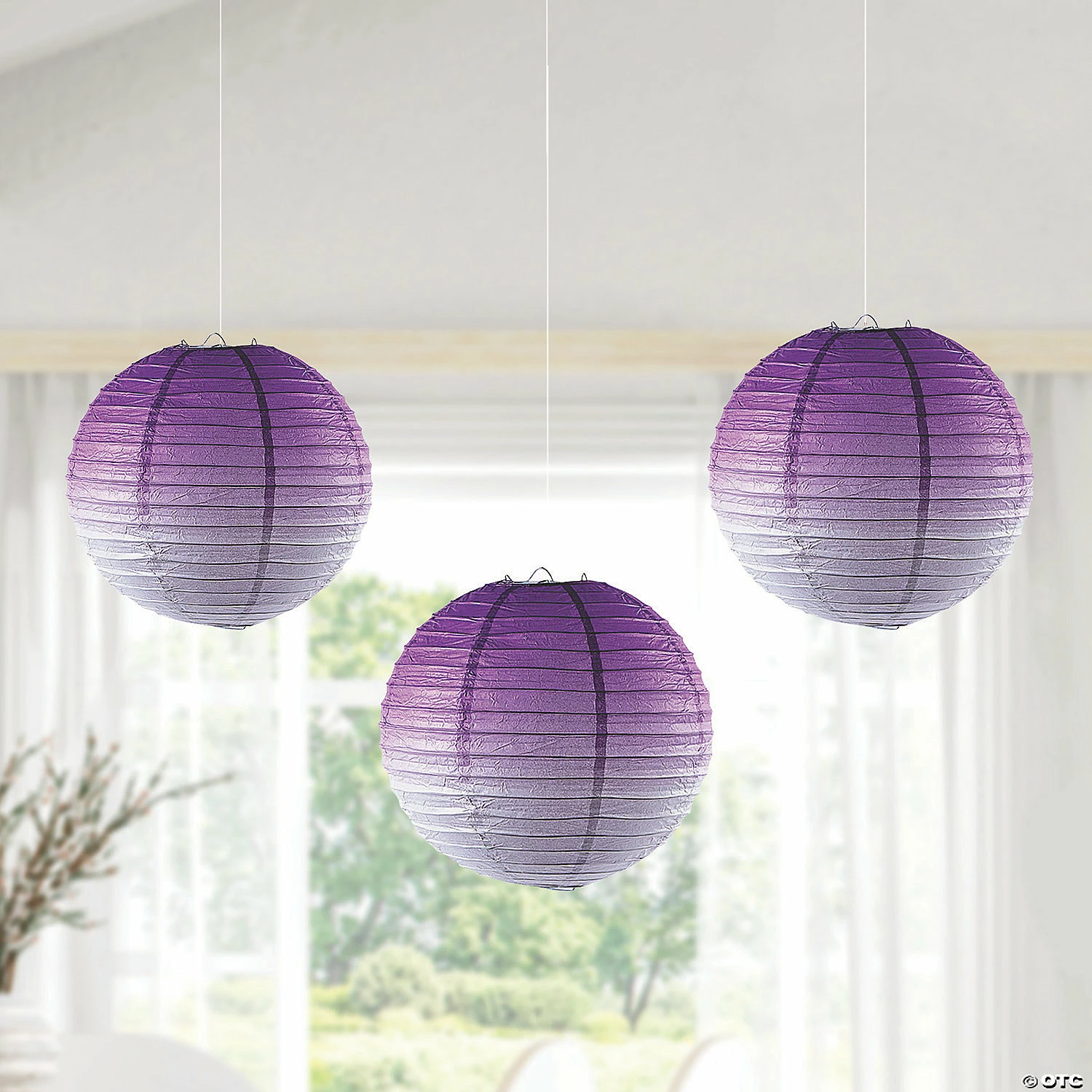 • QUALITY DECORATIONS: These sturdy, purple hanging decorations can be used time and time again to celebrate any occasion! Add in other solid color paper lanterns to add dimension to your party décor.• PERFECT FOR ANY CELEBRATION: Add an extra special touch to birthday parties and celebratory events no matter the location; these reusable party decorations have you covered.• BUDGET-FRIENDLY DIY DÉCOR: Not just for parties, these lanterns make beautiful, affordable additions to classroom decorations, wedding decorations, anniversary parties, baby showers and more.• VIBRANT DESIGN: These unique lantern decorations contain rich and vibrant purple hues that give an array of color to any party or wedding theme. • CREATIVE ACTIVITY: Use these hanging globe lanterns as is or add your own craft embellishments and watercolor paints to transform them DIY art projects, custom decorations or whatever else your imagination dreams up! Makes a fun classroom or at-home arts and crafts activity.• EASILY ASSEMBLE AND REUSE TIME AFTER TIME: These purple paper lanterns are easy to assemble and hang with the included metal hangers. When you’re done, simply fold them flat for easy storage until your next party where you need a little purple décor!• PARTY SUPERSTORE: Shop Oriental Trading for all of your party supply needs, from decorations to tableware to party favors and more. We’re your true one-stop party shop!Product Description:Add a fun ombre touch to party decorations with these paper lanterns! Perfect for any event from birthday parties to holiday parties, the ombre design will add a unique dimension to your party space. Size: 12 inchesShape: RoundQuantity: 3Material: PaperIncludes metal hangers.Simple assembly required.