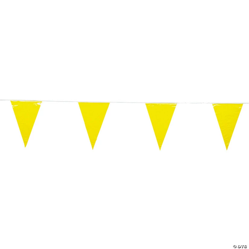 Add a splash of vibrant color to any event with this banner. At 100-ft. long, you’ll have plenty for decorating indoor or outdoor birthday parties, fundraisers, carnivals and more! Plastic. Includes 48 pennants on a 100-ft. string.