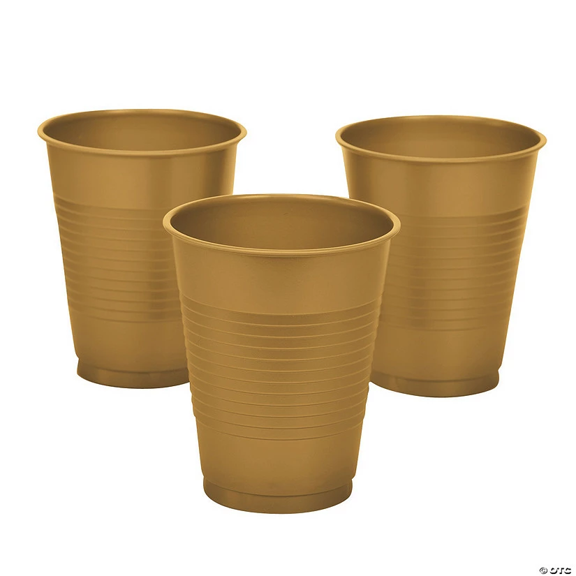 These 16 oz. Metallic Gold Plastic Cups are perfect for wedding receptions, rehearsal dinners, birthday parties, classroom celebrations and more. • Material: Plastic• (20 pcs./unit)• Size: 4 3/4″ 16 oz.• Assortment may vary.