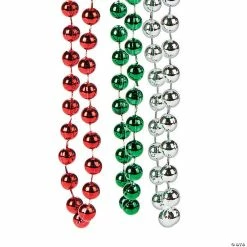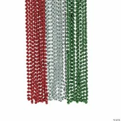 Christmas parties aren’t complete without festive Christmas accessories in Christmas colors. Add these red, green and silver beaded necklaces to your party supplies and have them ready for any holiday festivities. They also make fine Christmas stocking stuffers. The beads are made of plastic and each necklace measures 30″ so you can wear them long or double them up. If you enjoy arts and crafts then you can also get creative and use these necklaces for all sorts of Christmas craft ideas. Plastic. (4 dozen per unit) 30″ breakaway cord with 6mm beads.