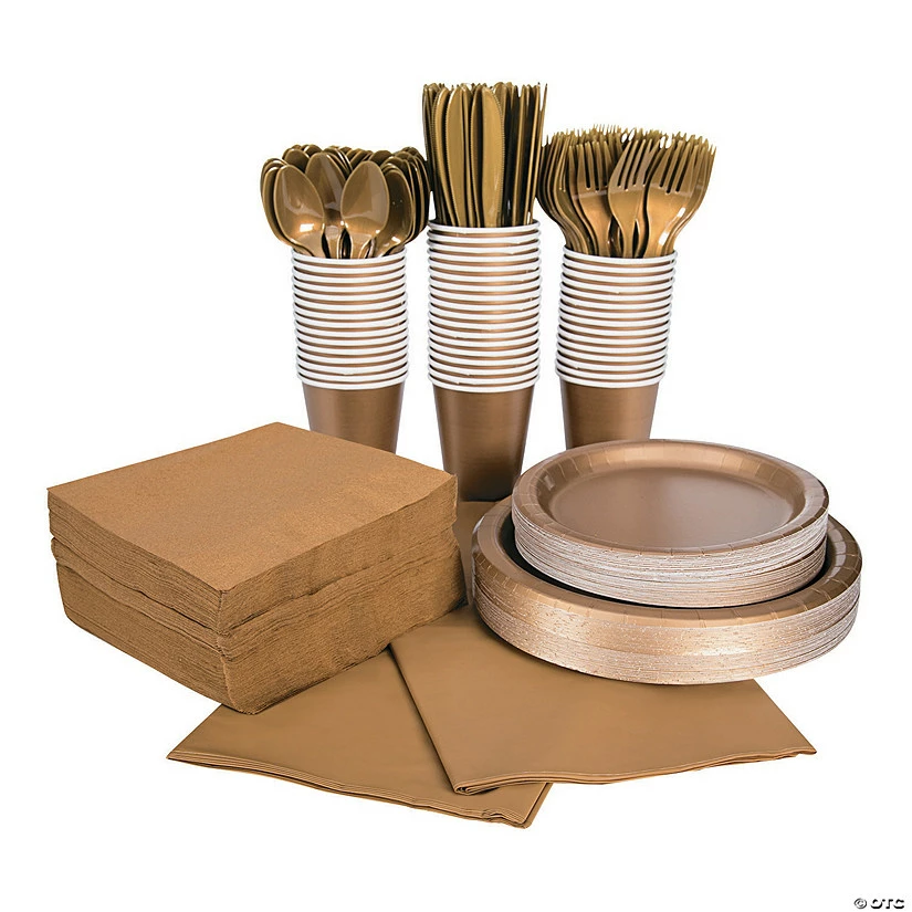 Serve up an amazing party with help from a party tableware set! You’ll get everything you need to serve 48 people, including paper plates, paper napkins, plastic cutlery, paper cups and even rectangular plastic tablecloths. With these party supplies, your party tables will definitely be set for success! (396 pcs. per unit)Includes:• 2 Plastic Tablecloths (54″ x 108″)• 48 Paper Dinner Plates (9″)• 48 Paper Dessert Plates (7″)• 48 Paper Cups (3 3/4″ 9 oz.)• 100 Paper Luncheon Napkins (6 1/2″)• 50 Plastic Forks (6 1/2″)• 50 Plastic Knives (7″)• 50 Plastic Spoons (6″)