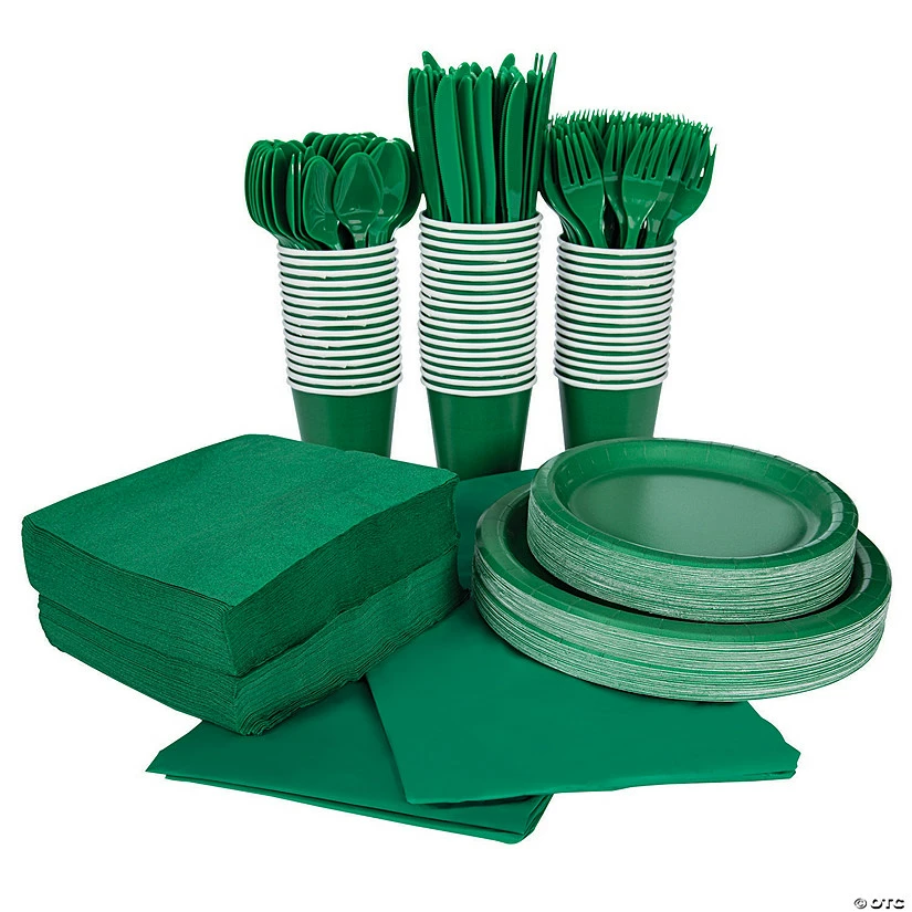 Serve up an amazing party with help from a party tableware set! You’ll get everything you need to serve 48 people, including paper plates, paper napkins, plastic cutlery, paper cups and even rectangular plastic tablecloths. With these party supplies, your party tables will definitely be set for success! (396 pcs. per unit)Includes:• 2 Plastic Tablecloths (54″ x 108″)• 48 Paper Dinner Plates (9″)• 48 Paper Dessert Plates (7″)• 48 Paper Cups (3 3/4″ 9 oz.)• 100 Paper Luncheon Napkins (6 1/2″)• 50 Plastic Forks (6 1/2″)• 50 Plastic Knives (7″)• 50 Plastic Spoons (6″)