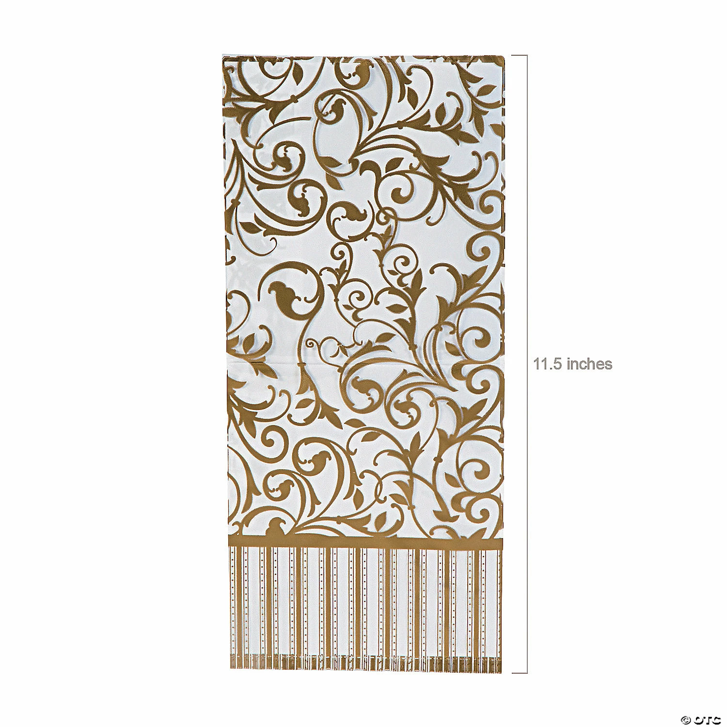 • Travel-Friendly: Once the party is over, your guests will be happy to take home your favorite cookies, cake pops, cupcakes or other baked goods in these easy-to-carry bags. • Say Thanks with Sweets: Are you looking for an easy way to thank the people in your life? These multipurpose bags filled with great snacks are a sweet way to spread appreciation among party guests, students and teachers, or employees!• Perfect Size for Parties: These treat bags are just the right size for candies. Fill them up with tasty treats and hand them out as party favors at your next birthday party, holiday gathering or wedding reception! Product Description:A pretty filigree design gives these cellophane bags a classic aesthetic. They’re a lovely addition to wedding supplies, and they give your candy buffet charm and vibrancy. Great for chic birthday parties, bachelorette parties, baby showers, and all-year general gift giving. Wrap your party favors up in style! Ties not included. Size: 5″ x 2 1/2″ x 11 1/2″ Quantity: 12Material: Cellophane© OTC